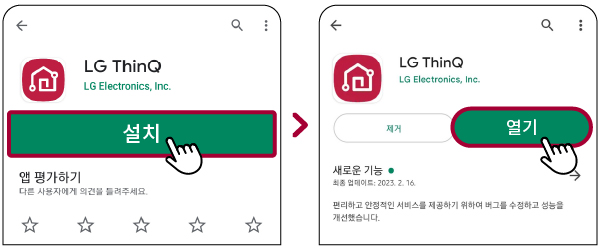 설치가 완료 되었다면 열기 버튼을 터치하여 LG ThinQ 앱을 실행해주세요.